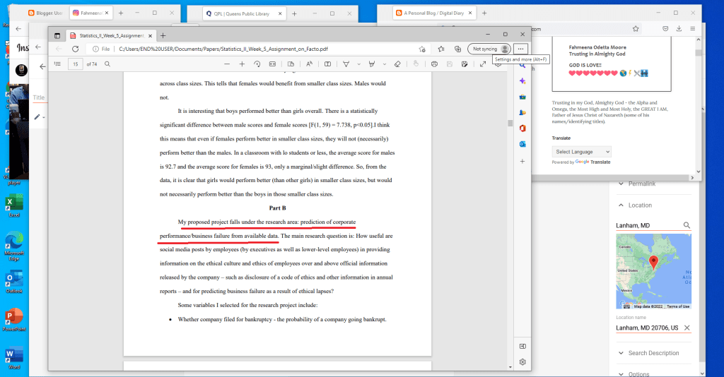 In a statistics paper, I proposed research on the how well social media posts provide information on ethical culture and also predict business failure.