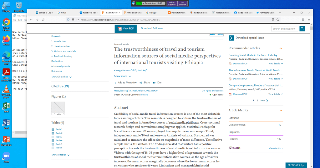 Here is a paper that researched how much international tourists trust travel information available on social media: