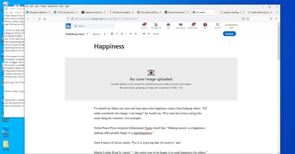 I posted another article in LinkedIn – https://www.linkedin.com/pulse/happiness-fahmeena-odetta-moore