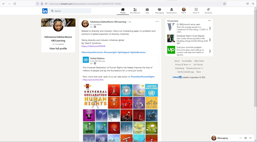 Universal Human Rights is also related to diversity and inclusion. Here is my comment on the UN’s Universal Declaration of Human Rights in LinkedIn:
