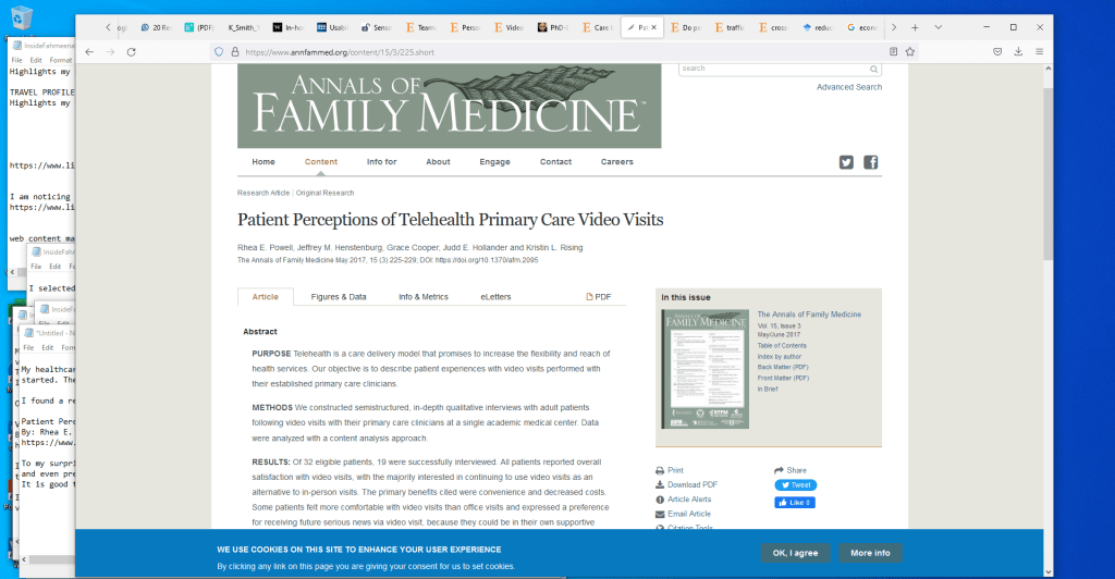 I found a research paper that investigated how patients viewed their primary care video visits:
