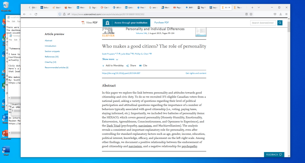 Here’s a paper that provides information on good citizenship. It looks at the personalities/traits of individuals that lead them to be good citizens.