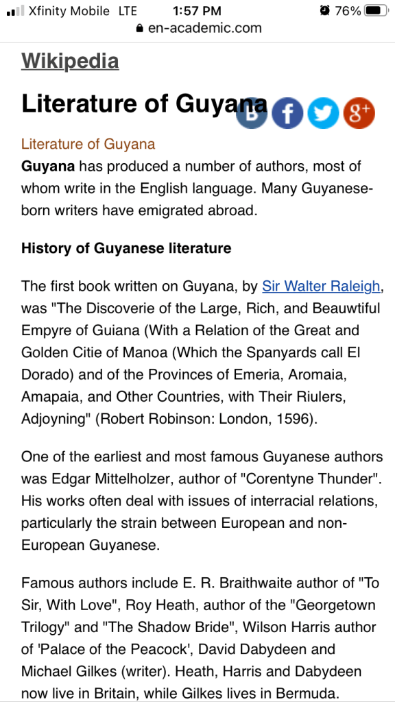 The previous post on outstanding Guyanese actress Letitia Wright made me think of notable Guyanese writers. Yes, Guyana produced some outstanding writers (who wrote/write in English).