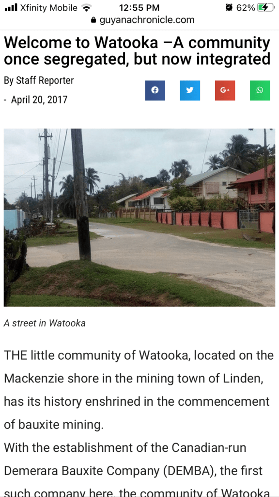 Watooka Day was created by the bauxite company (called Guymine when I was there; called Demba originally, which was owned by Alcan Aluminum). The Chinese took over bauxite mining operations in Linden. The company is called Bonsai Minerals Group Guyana Inc.