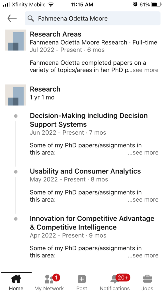 I recently updated my research areas in my Research LinkedIn profile. The two changed areas are shown below.