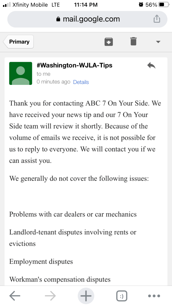 I also decided to contact Channel 7 News about issues I’ve been dealing with recently. The I-Team at Channel 7 does a good job investigating issues and problems.