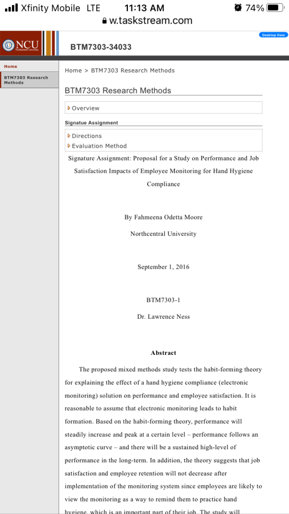 I completed 11 signature assignments – significant papers with original ideas. In one paper, I foresaw specific problems at a major company. In another, I designed a study (with statistical analyses) to explain why videos do not significantly enhance or improve online reviews. I worked alone. My signature assignments available at: https://fahmeenaodettasignaturepapers.tumblr.com.
