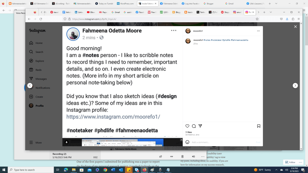 I create/use a lot of electronic notes – notes in Notepad, Sticky Notes, One Note, Evernote, and Notes (Apple phone). I use one of these options across (all my) devices, i.e. I create some notes on my computer, I create some on my phone etc. I am able to create a note on one device (using the application) and view or edit it in another. I am thinking of updating a LinkedIn article I published on my note-taking. I am thinking of updating a LinkedIn article I published on my note-taking.