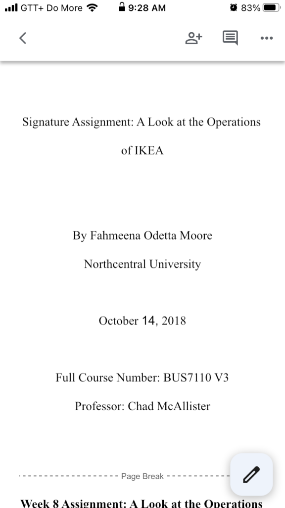 I completed about 10 signature assignments at NCU. One of those signature assignments was prepared from Georgetown, Guyana – the signature assignment on IKEA Operations (prepared for the Business Environment course). I traveled to Guyana five years ago after my ordeal in New York. I completed most of the assignments for the course in New York. I had two assignments left, the week 7 assignment and the signature assignment (see http://fmoorephdbus7110.blogspot.com/2018/10/different-location-no-problems.html?m=0).