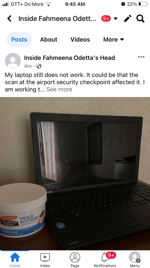 My laptop still does not work. It could be that the scan at the airport security checkpoint affected it. I am working to fix it soon.