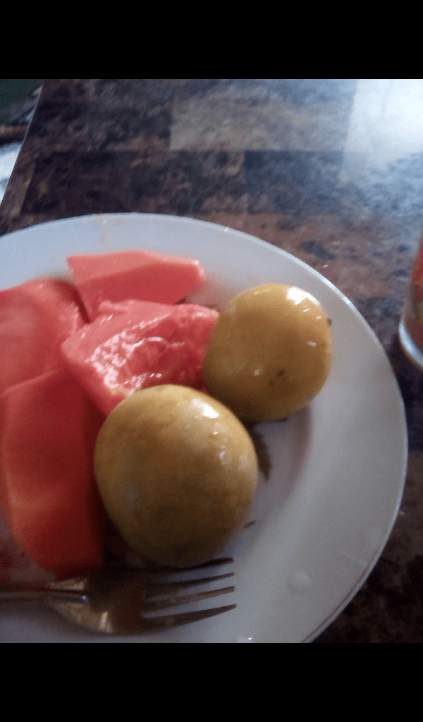 I had some delicious “black eye cook-up” (cook-up rice with black eye peas), fruit, and fruit juice.