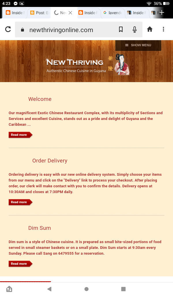 I recall there was a popular Chinese restaurant near the hotel I stayed in near Bank of Guyana in Georgetown. The menu was quite extensive. I tried to place an order for delivery but was unsuccessful.