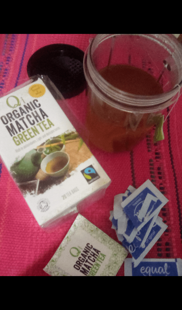 I am enjoying warm matcha green tea, a gift from my sister. It is very good! It is a good day in Linden, Guyana!