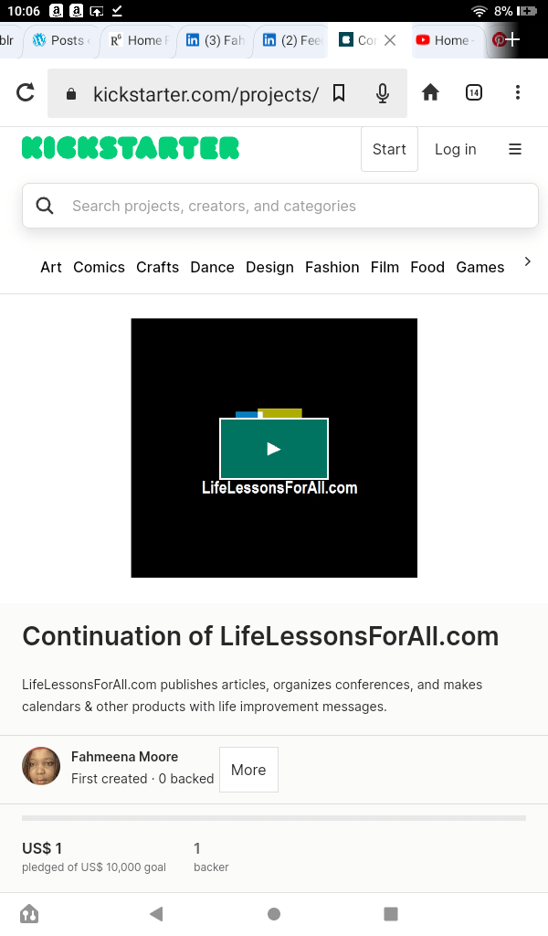 In 2014, I used KickStarter.com to obtain funding for LifeLessonsForAll.com. It was good experience – the first time I used crowdfunding for a project. I learned a lot.