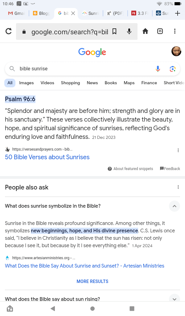 A sunrise makes me think of a new day and new beginnings. It also makes me think of God’s majesty, especially when there are a lot of sun rays in the sunrise.