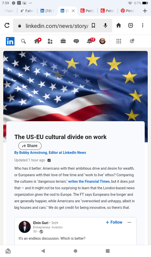 Good morning from Linden, Guyana! It is Monday morning and, for many, time to return to work after the long weekend. I just read a piece on the difference in work culture in the U.S. and E.U. The U.S. is all about working more to achieve more while the E.U. is about free time and working to live. It is no surprise that Europeans are happier and live longer.