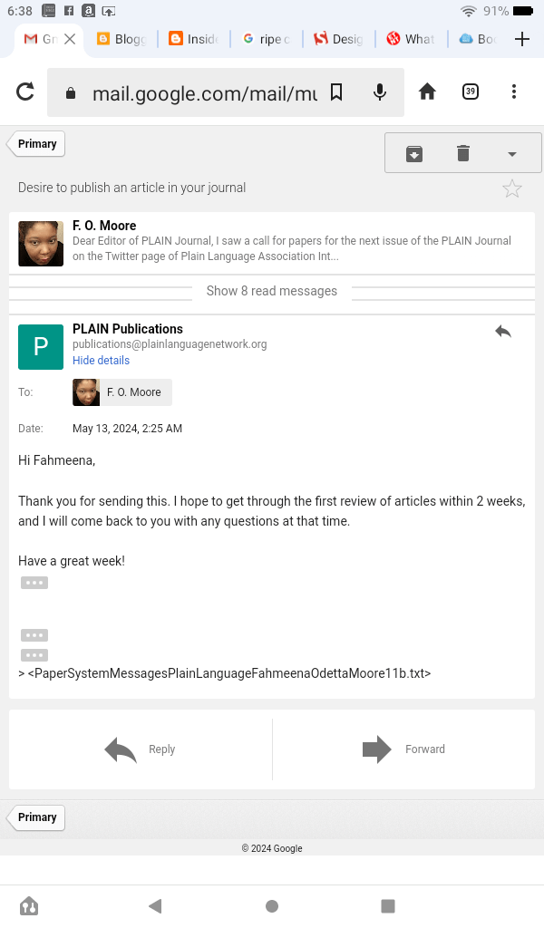 I received an acknowledgement of receipt of the paper I submitted. Hopefully, I will hear good things (have good feedback) after the first review. In general, I don’t like review processes.