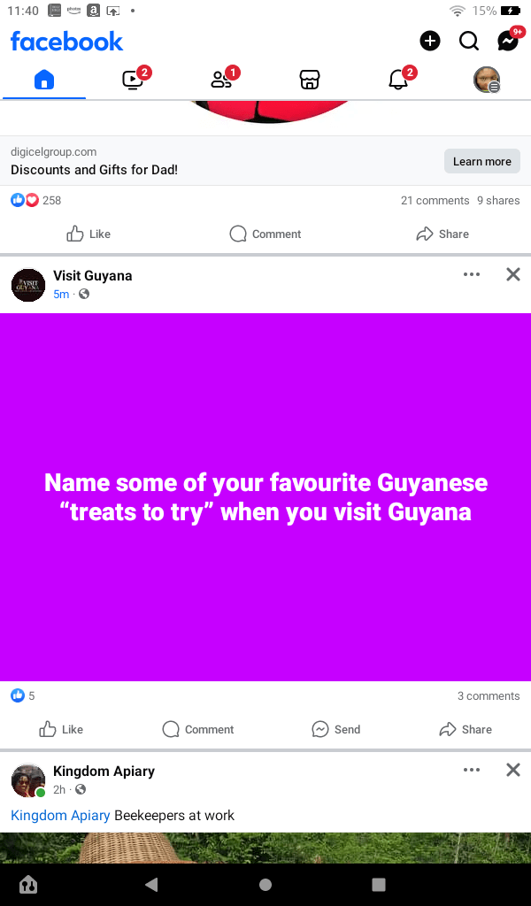 I am currently vacationing in Linden, Guyana and I enjoy lots of Guyanese treats. Some include: fresh coconut water, sugar cane, salara, tennis roll and cheese, cross buns, and black cake. These are all foods I enjoyed as a little girl in Guyana and are not quite the same or just not available in Maryland. I enjoy the fruits in Guyana too.