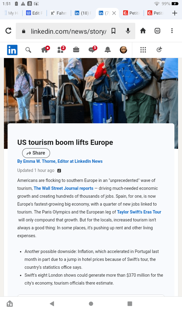 This is good information. Travel seems to be popular again across the US. It seems that no one is thinking of COVID. I bet it will triple for the Paris Olympics.