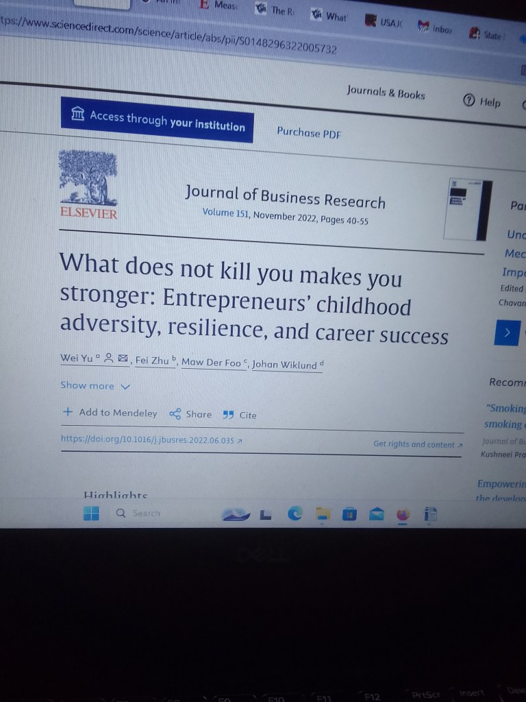 I found an interesting journal article on how a difficult childhood could lead to career success as an entrepreneur. It is because people who had a difficult childhood learn to be resilient. This shows that a lot of good can come out of bad experiences (every cloud has a silver lining).