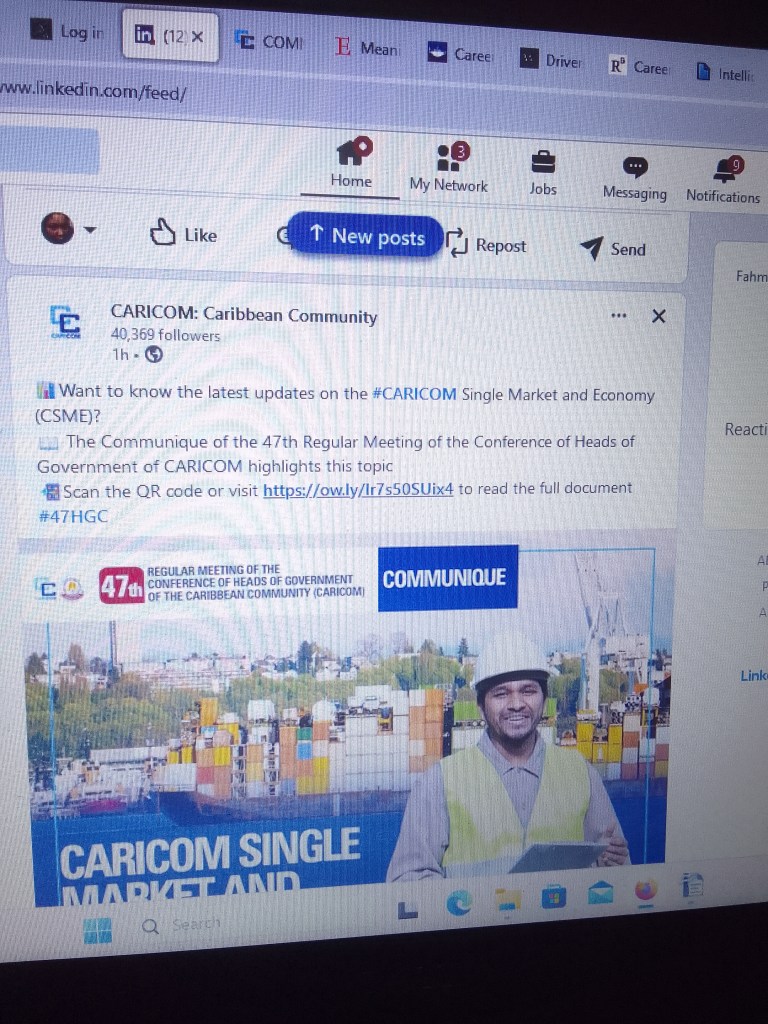 The Communique of the 47th Regular Meeting of the Conference of Heads of Government of CARICOM countries provides good information on the state of affairs of member countries. It provides a nice synopsis of issues facing member countries (it is available on LinkedIn). It was good to see a strategy for regional digital resilience, including a project to train CARICOM citizens in key areas such as artificial intelligence and data analytics. I looked for information on research in the region but found none.