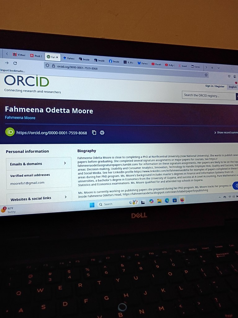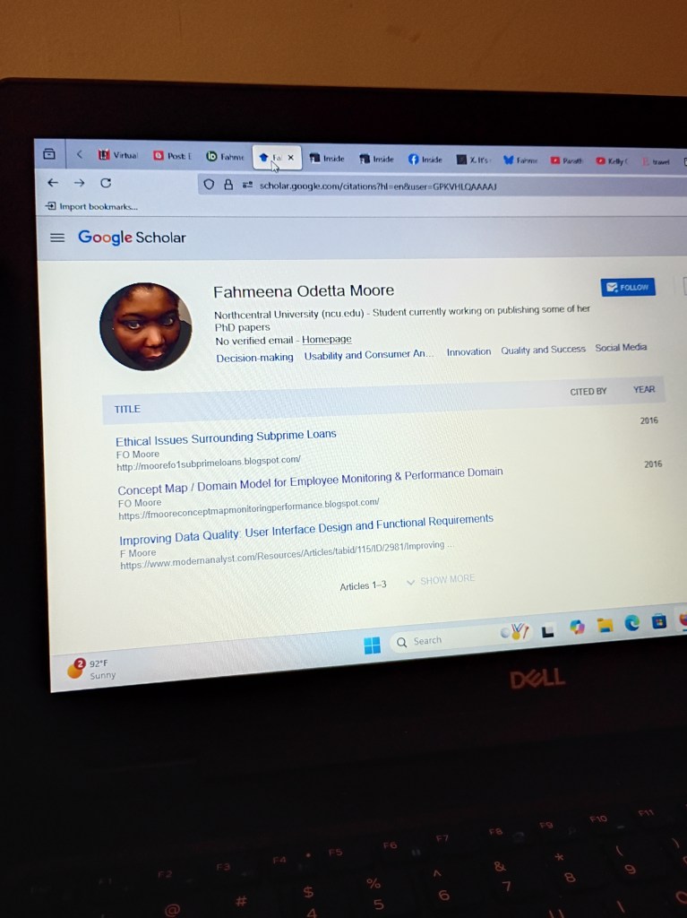 I updated two of my research profiles today – my ORCID page (https://orcid.org/0000-0001-7559-8068) and my Google Scholar page (https://scholar.google.com/citations?hl=en&user=GPKVHLQAAAAJ). I miss working on papers for publishing. I should be back working on papers for classes at Northcentral University (now National University). I am unable to at this time.