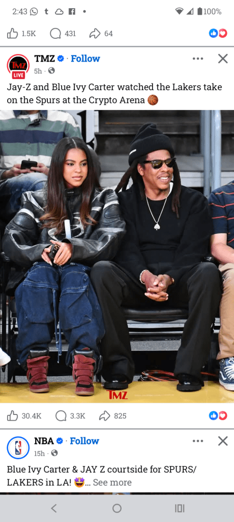 I just read the news story on the courtside appearance of Beyonce’s daughter Blue Ivy with her father. From the photo it seemed that the two had a good time. It is good to see that fathers going out with their daughters is mainstream. You may know that I have lunch with my father from time to time. We both like eating at Golden Corral. I think such father-daughter time is useful for discussing issues and sharing ideas.